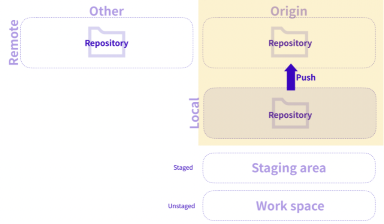 4. staging area에 들어온 파일들은 commit 이 가능하다. commit 을 하고 나면 내 remote repositary에 push 해서 commit 기록을 remote 에도 남겨줄 수 있다.